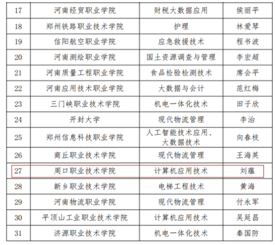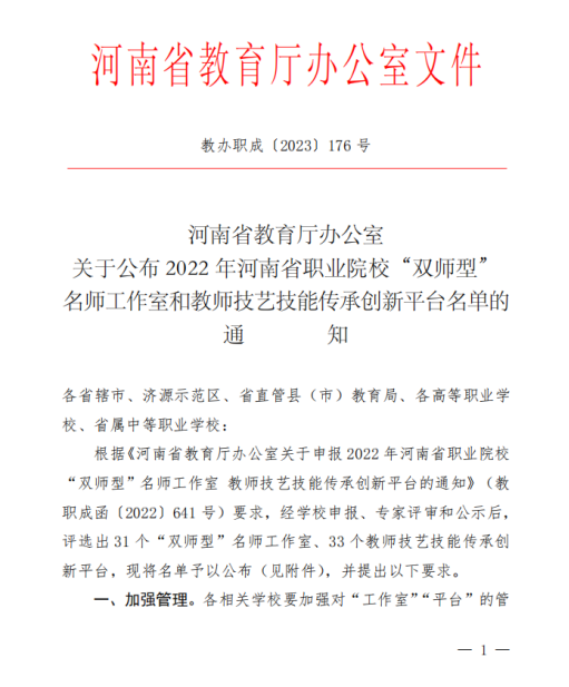 近日,河南省教育厅办公室印发了《河南省教育厅办公室关于公布2022年河南省职业院校“双师型”名师工作室和教师技艺技能传承创新平台名单的通知》(教办职成[2023]176号),我校人人摸人人看刘蕴教授作为主持人申报的计算机应用技术专业“双师型”名师工作室成功获批,这是我校“双师型”教师团队建设取得的又一重大成果。