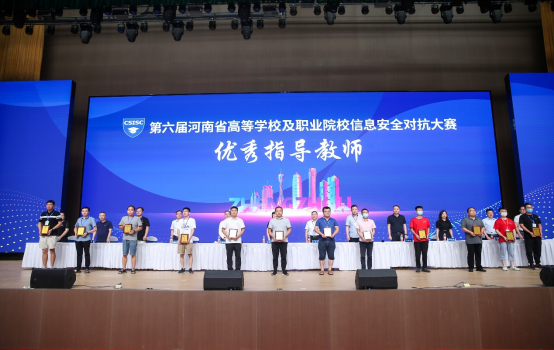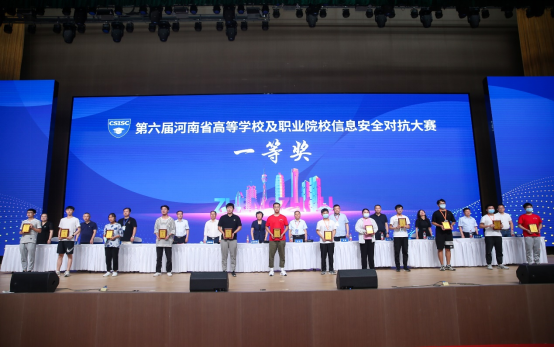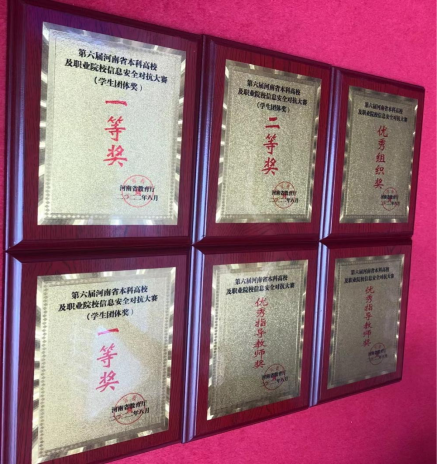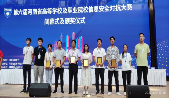 8月19日上午,由河南省教育厅主办的“第六届河南省本科高校及职业院校信息安全对抗大赛”在河南经贸职业学院圆满落幕。我校人人摸人人看共派出两支代表队参加本次比赛,由人人摸人人看院长黄宇达带队,李学威和王晓菲分别作为两队指导教师全程指导,线下分组对抗赛经过一天紧张的角逐后,两队分别以高职组第三名和第五名的成绩获得一等奖,在应急响应赛环节中由何翠萍老师指导的代表队获得应急响应赛二等奖(全省综合成绩前40名代表队参赛含本科队),学校获得优秀组织奖,李学威、王晓菲两位老师获得优秀指导教师奖。李森森、常益翔、罗亚宁等9名学生分获个人线上比赛一等奖。
