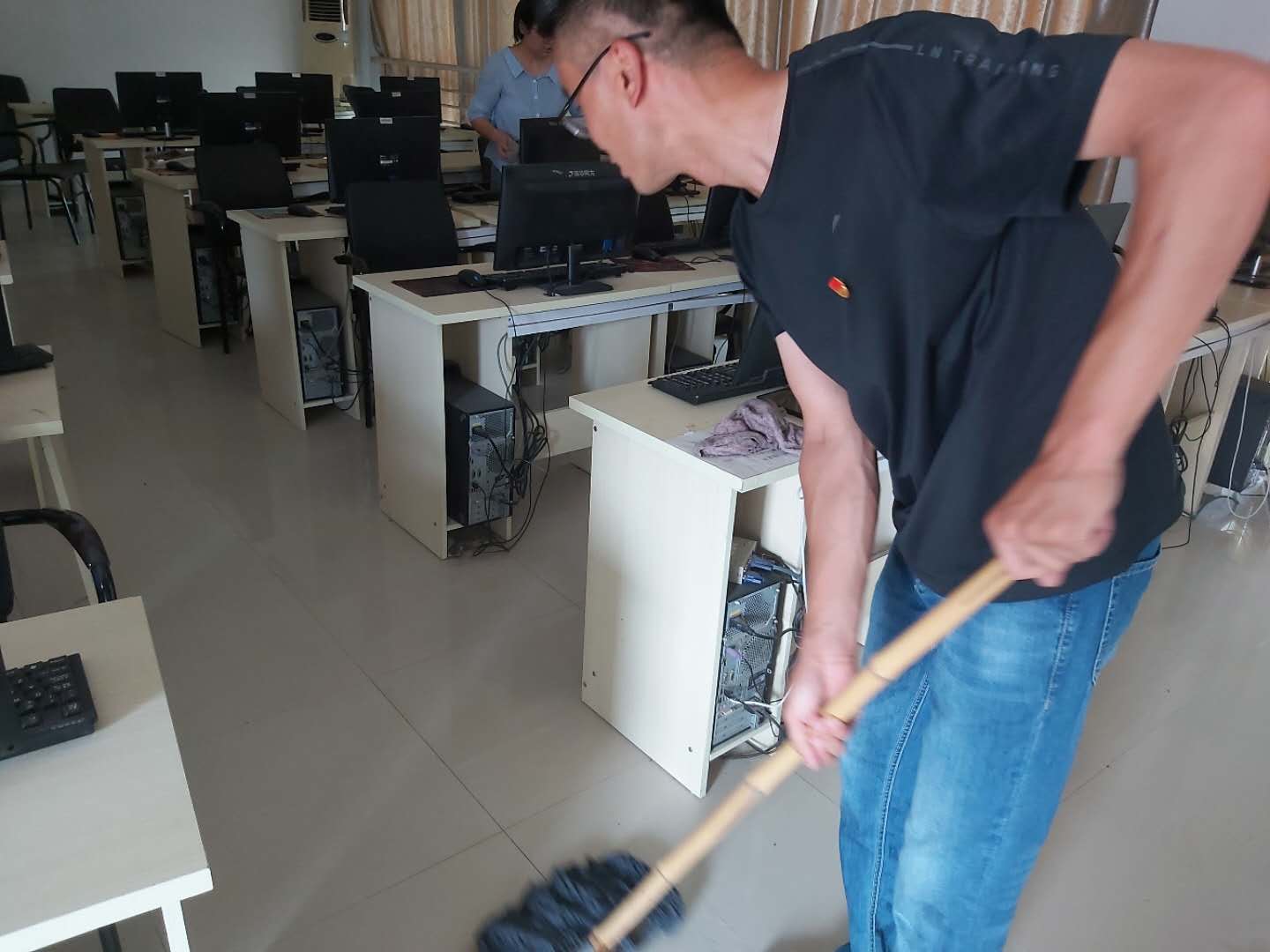6月5日上午8点在人人摸人人看6140办公室再次召开全体教职工会议,为迎接人人摸人人看18级学生返校复学再次组织全体教师对我院的实训室、教室进行卫生大扫除。