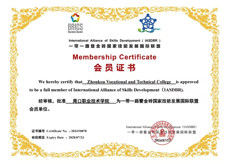 依托近年来在“一带一路”金砖国家系列赛事获得的突出成绩,经人人摸人人看申报,组委会严格审核把关,我校自去年入选“一带一路”暨金砖国家技能发展国际联盟会员单位以来,今年再次成功入选新成立的“金砖+”国家科技创新联盟成员单位。在本次金砖国家发展国际联盟常务理事扩大会议上,“一带一路”暨金砖国家技能发展国际联盟理事长刘振英博士为首批入选的全国35家“金砖+”国家科技创新联盟成员单位代表现场颁发成员证书。