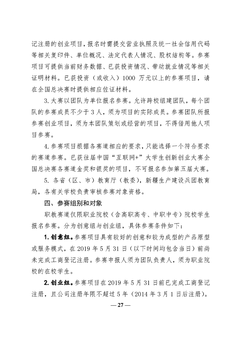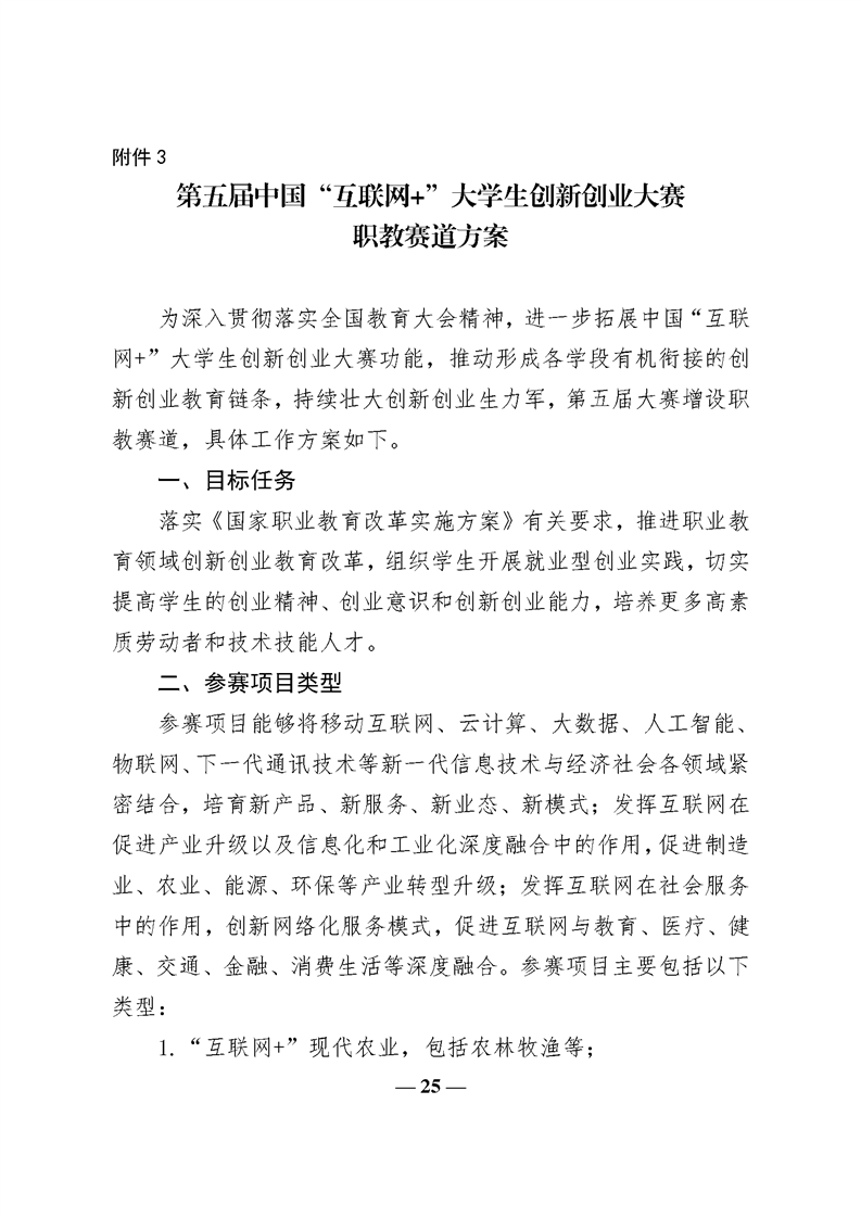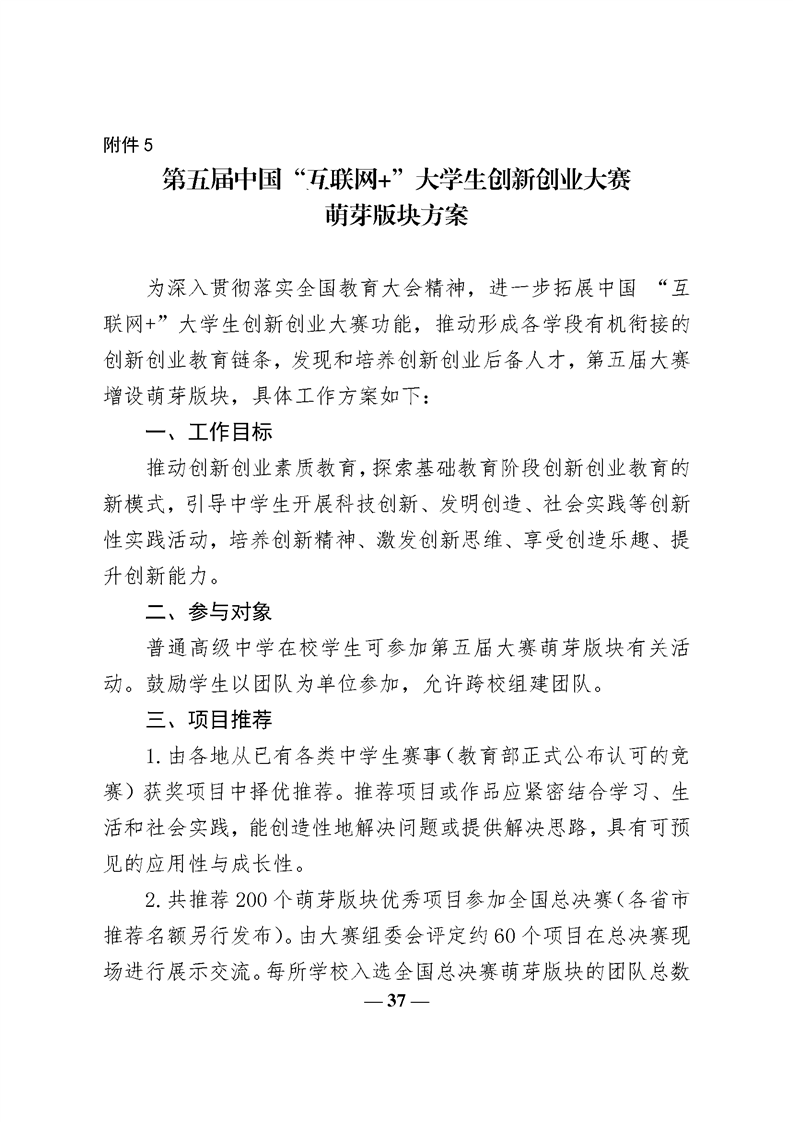 教育部关于举办第五届中国“互联网”大学生创新创业大赛的通知