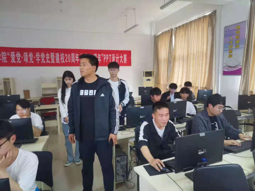 为庆祝中国共产党建党一百周年,5月19日下午,人人摸人人看在学院D机房举办“爱党、颂党、学党史”暨建校20周年演示文稿设计大赛。学院学管办主任王文立亲临比赛现场进行指导。