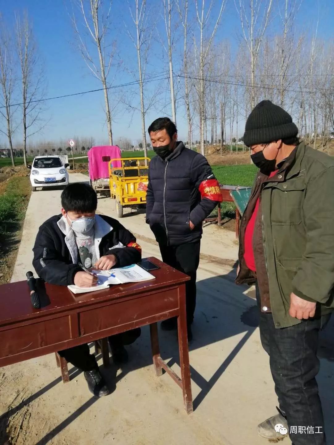 张浩宇,家住河南省驻马店市遂平县刘虎庄,周口职业技术学院18级计算机应用三班的一名学生。面对此次疫情,张浩宇同学主动加入了志愿者的行列,每天在村口的驻守点站岗,排查往来车辆和人员,劝解外来人不得入内,外出者需要拿出证明登记并测量体温。在寒冷的室外,他不怕寒冷,不怕困难,勇敢的承担了这光荣的使命。