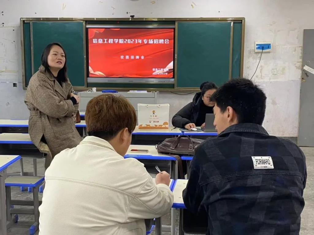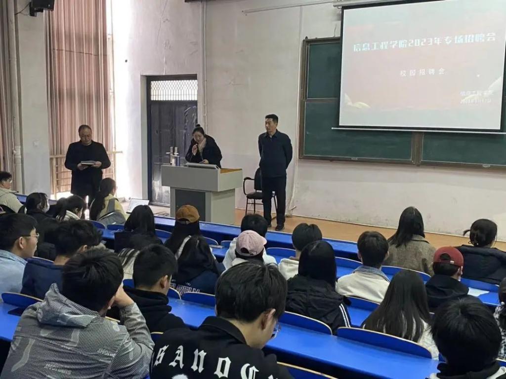 在招聘会的初始,先由学管副院长楚书来进行了致辞,阐述了目前严峻的就业形势,鼓励学生在结合自我认知和职业世界认知的情况下,抓住就业机会,调整就业心态,勇于拼搏,敢于奋斗,为未来的职业生涯做好规划,定好方向,立足当下,展望未来,准备迎接自己步入社会后的人生新阶段,成就美好人生。发言结束后参会的三家企业:河南海码科技有限责任公司、郑州匠云网络科技有限公司、河南华杉信息技术有限公司,面向参加此次校园招聘会的近200名学生,企业方按照顺序逐一进行了企业推介。各企业均宣讲了企业概况、发展前景及招聘岗位等相关信息,供学生了解企业,做出准确的选择。