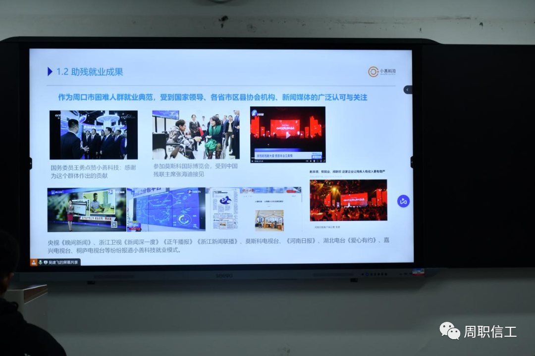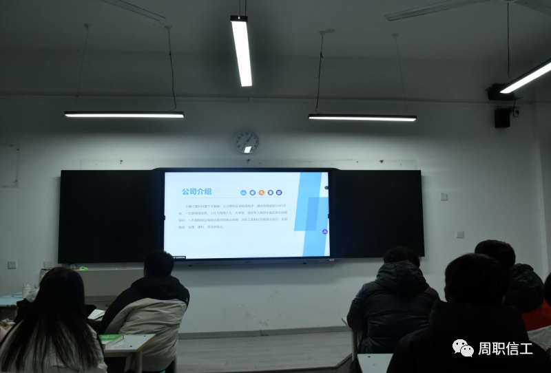 在此次宣讲会中,浙江小善大爱科技有限公司详细地向我们介绍了多种就业的岗位,岗位职责、招聘的人数、任职的要求以及福利待遇,其中包括:抖音审核员、运营组长等,向我们展示了培训基地。同时也通过视频向我们展示了公司良好的工作环境,工作氛围,要根据市场需求来调整自己的职业规划,帮助我们学生将自己在课堂上学习到的东西与工作要求相结合,鼓励同学通过自己的认知来选择职业。