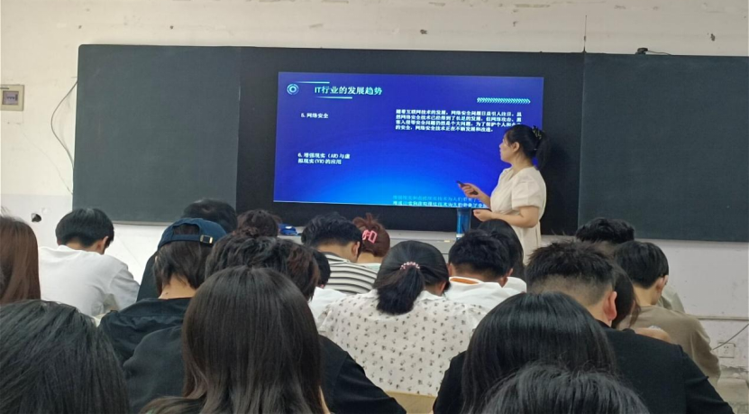 本次招聘宣讲负责人通过国家战略、法律、行政法规等方面比较分析就业形势,全面介绍了公司的发展情况、企业文化、招聘岗位、薪资待遇和晋升情况,主要介绍了每个岗位名称的工作任务,对于IT行业人才能力的需求,需要具备态势感知能力、内网安全等方面需求进行仔细地讲解。宣讲会上,同学们纷纷与企业沟通交流,了解岗位要求及发展前景,主讲人耐心解答了我院学生的相关问题,并提出了很多具有针对性地建议。